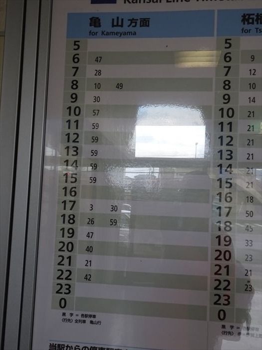 時刻表には朝夕の短い時間を除き、1時間に1本の電車が。