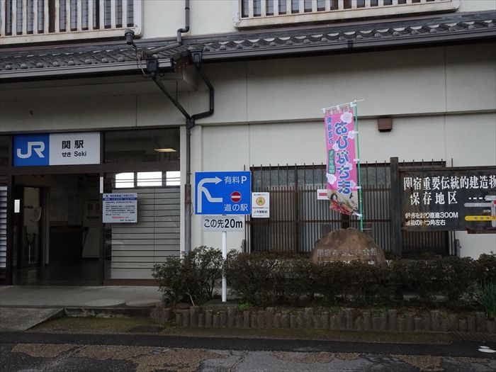 関駅舎前には『関宿ふるさと会館』と刻まれた石碑があった。