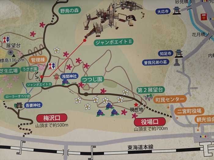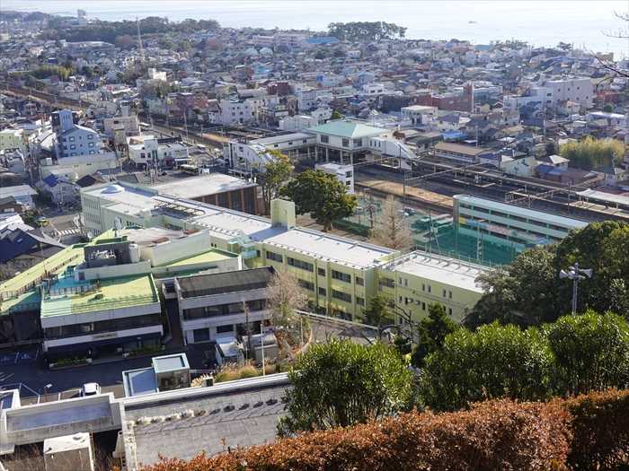 休憩所・第2展望台から「JR二宮駅」そして相模湾を。