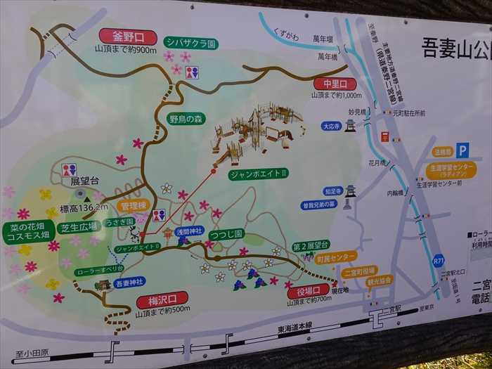 「吾妻山 菜の花 ウォッチング 歩行者」案内。