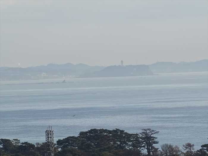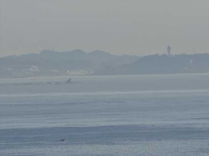 「江の島」の手前左側には茅ヶ崎「烏帽子岩」も確認できた。