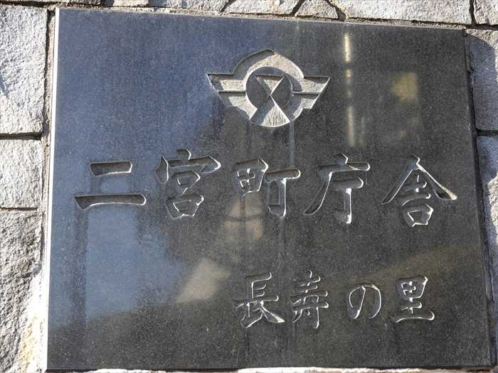 急坂の途中右側に「二宮町役場」への入口があり町章が。