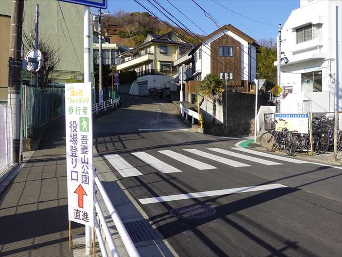 「吾妻山公園・管理事務所」入口前を左折して進む。