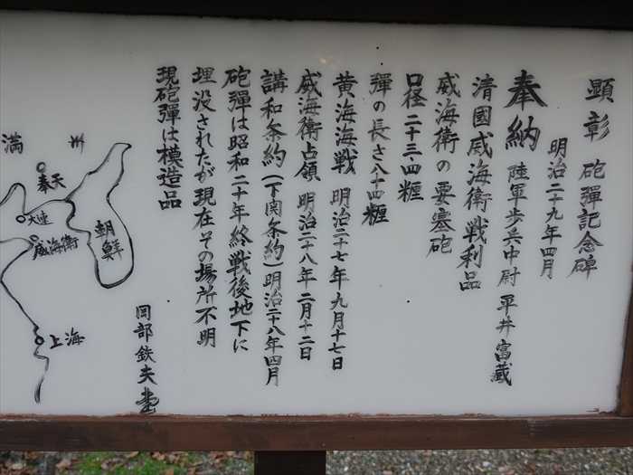 明治三十八年 功四級金鶏勲章を賜り九月十七日招魂社に砲弾と台座を奉納する