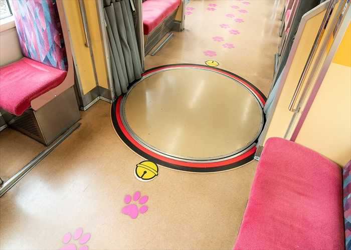 車内の床には足跡、そして連結部分には鈴もデザインされていると。