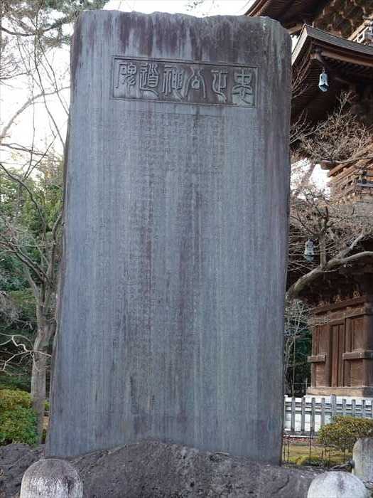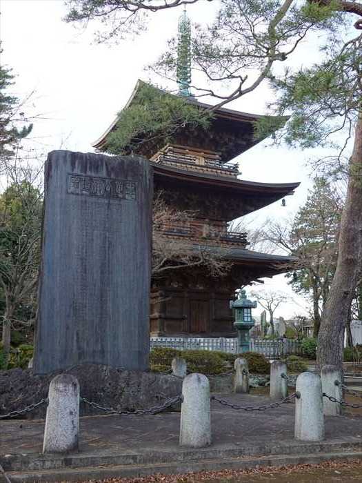 左手前方には「三重塔」とその手前に大きな石碑が。