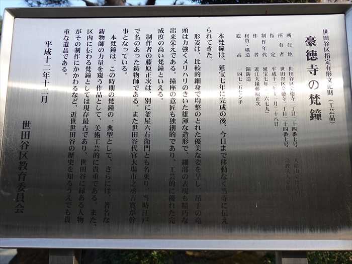 世田谷区指定有形文化財(工芸品) 豪徳寺の梵鐘