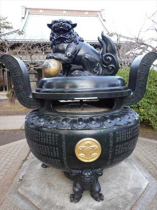 大きな香炉に献香した後、香炉やこの獅子が手を置いている手毬を撫でるとご利益がある