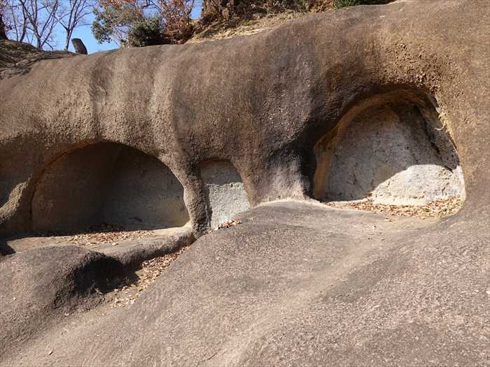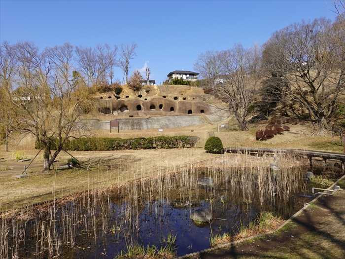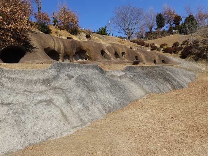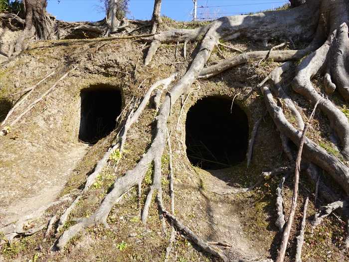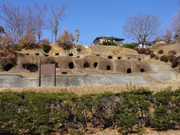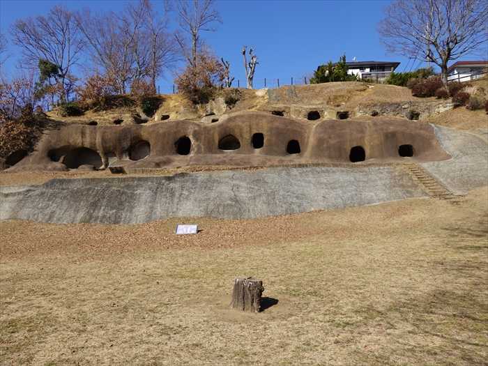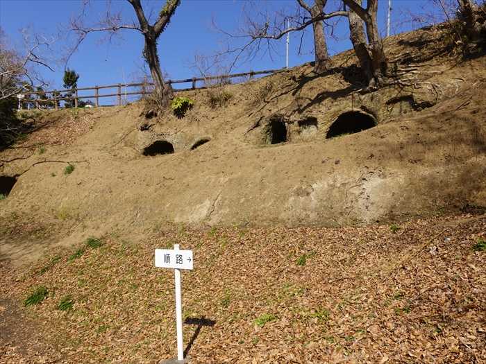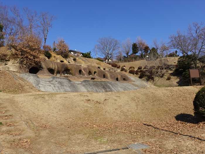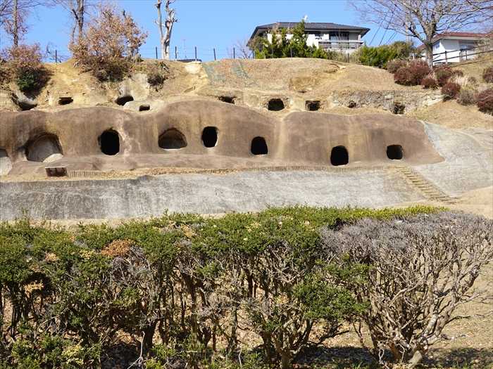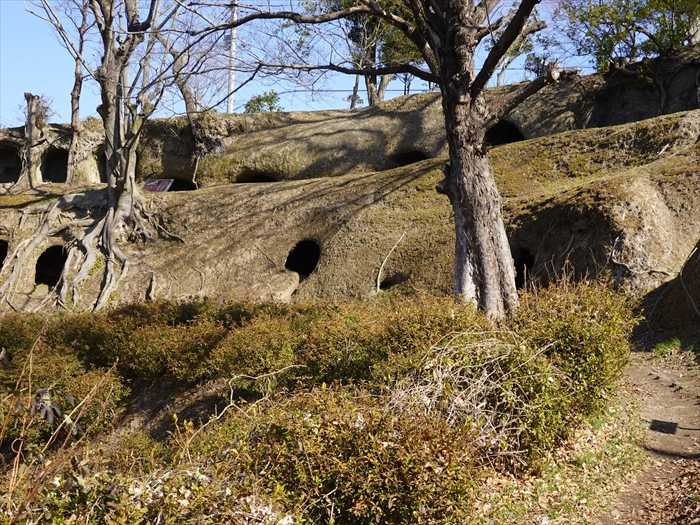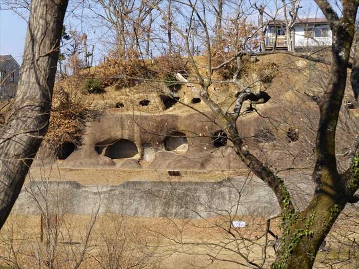 公園の東側の斜面に掘られた横穴群で、125号と127号は伊豆地方で最古の横穴で、古墳時代