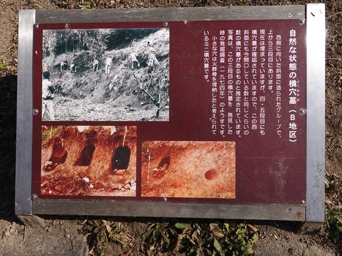 小さな穴は火葬骨を埋納したと考えられているミニ横穴墓です。」