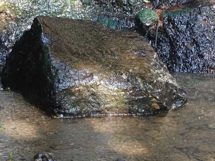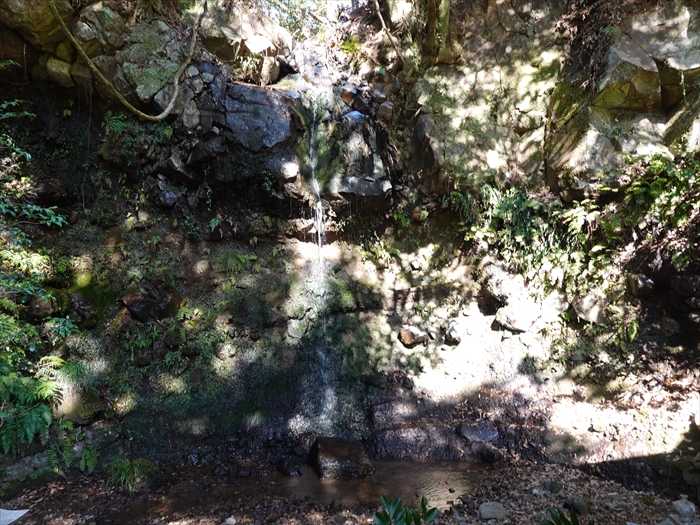 当入穴よりの湧水で滝が出来ているが、奥の院と云われている。滝壺には座禪石が置かれている。
