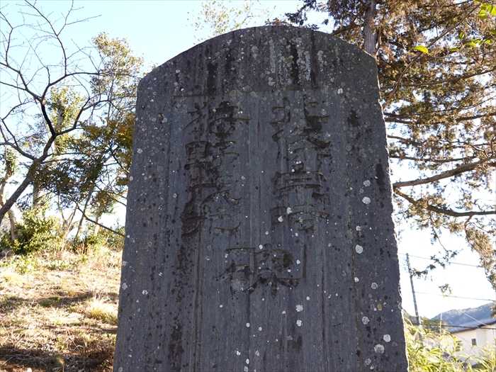 「北条宗時 狩野茂光 碑」と上部に刻まれていたが、下部の文字は解読不能であった。