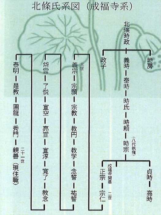 建立しました。爾来、北條氏の血脈を保ち、現代に至っております。北條正宗公法名、成福寺殿