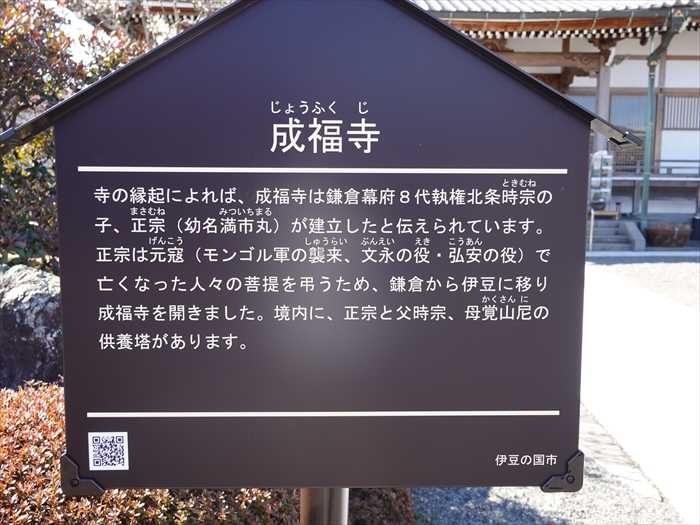 父時宗の死後、正宗は鎌倉を離れ、北条氏の故郷、伊豆北条村に成福寺を建て、両親の遺骨の