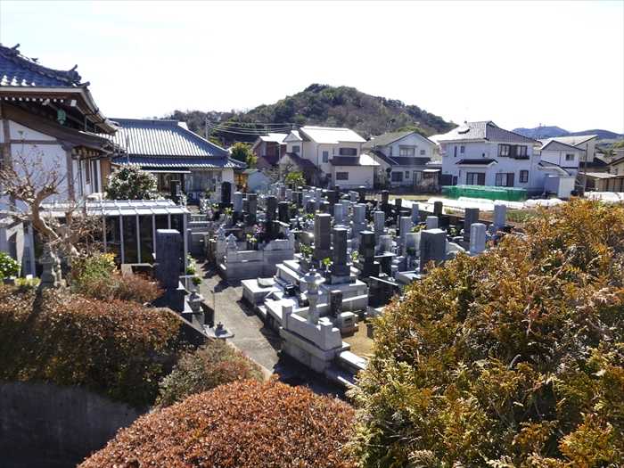 墓地を望む。