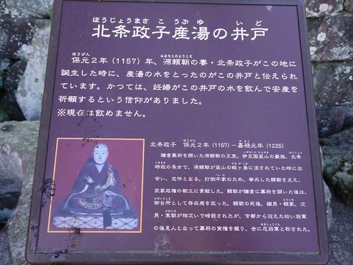 保元2年(1157)年、源頼朝の妻・北条政子がこの地に誕生した時に、産湯の水をとったのが