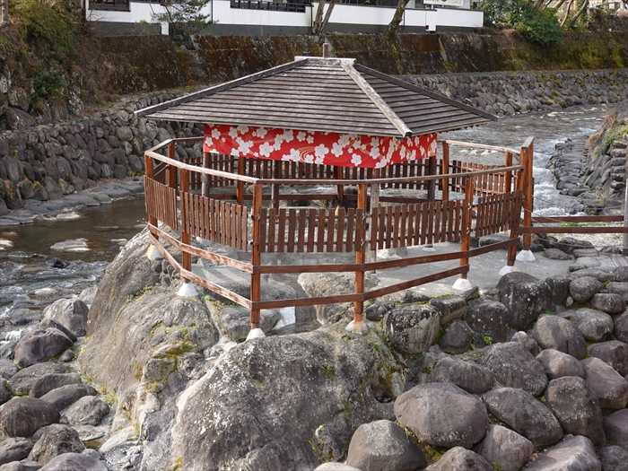 修善寺温泉の中心を流れる、桂川河畔に湧く修善寺温泉発祥の湯。