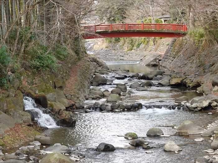 上流の「楓橋(かえでばし)」別名:寄り添い橋 を見る。