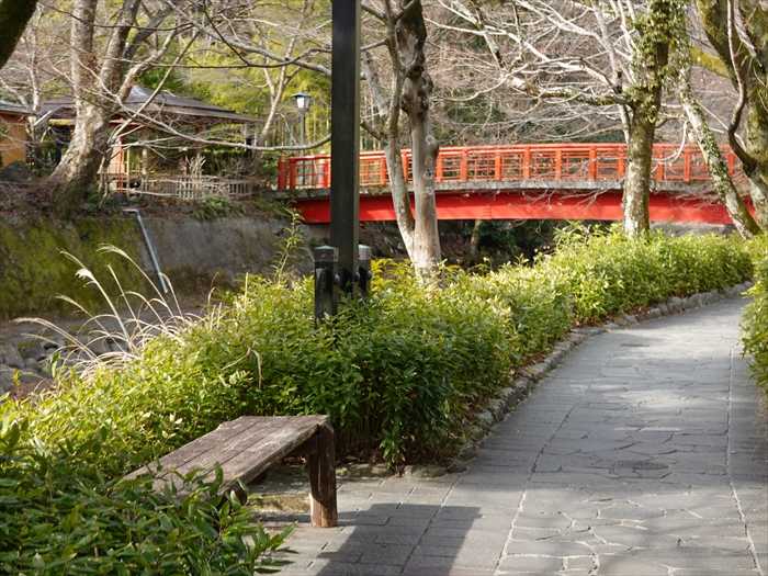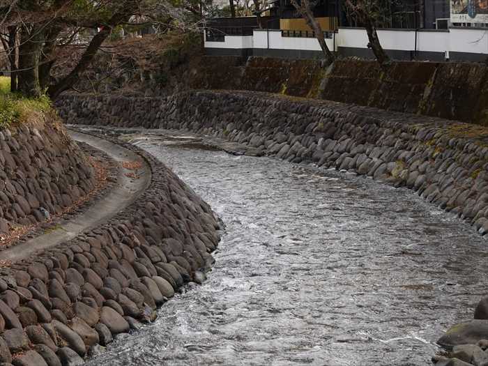 平成6年(1994年)から3年間を費やして整備された温泉街の中央を流れる桂川沿いの散策道、