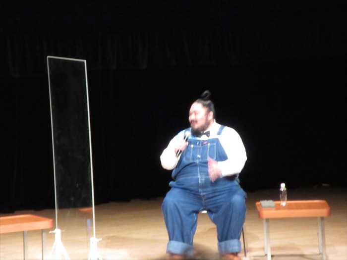 身長180cm、体重180キロの立派な体格で座る椅子が他の二人と同じで爆笑。