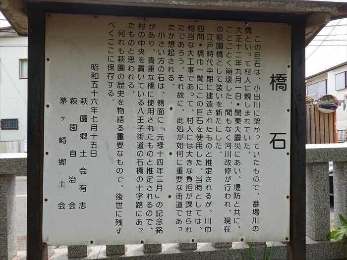 されるので、村の中央を貫いている八王子街道の石橋の十字路にあったものと思われる。