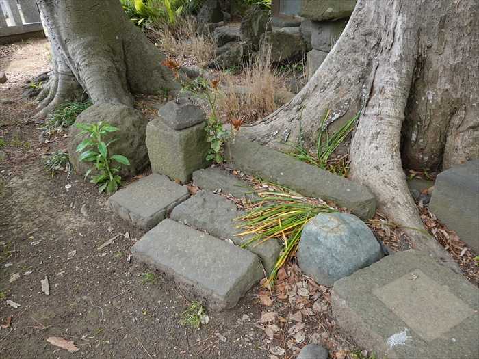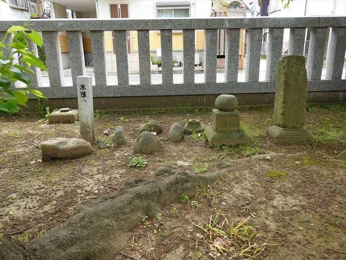 「三島大神」の境内の南西隅には多くの石碑が。
