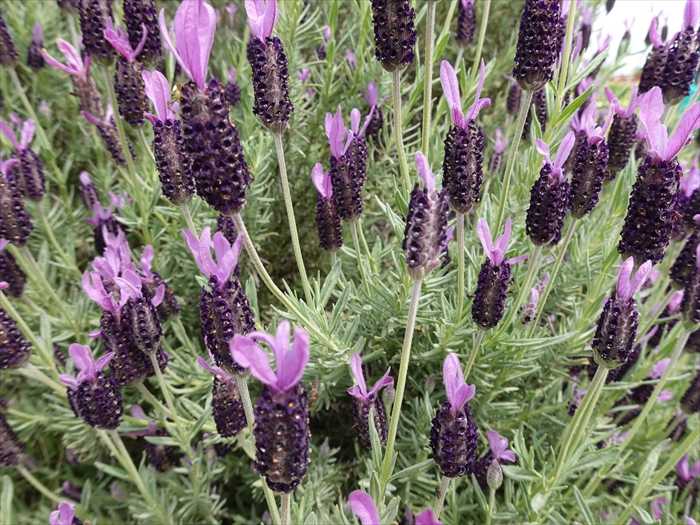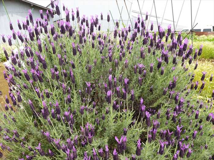 畑の隅には紫のラベンダーの花が。