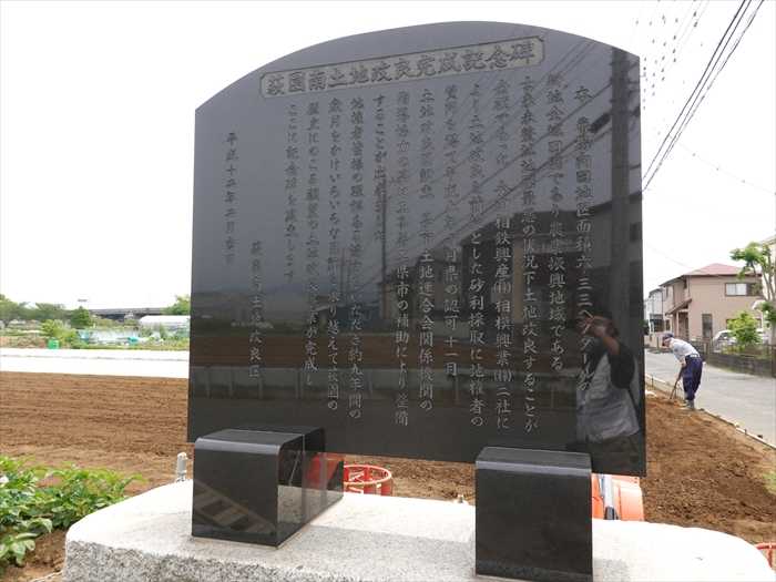 以上で土地改良事業が完成したことを記して記念するものです。」