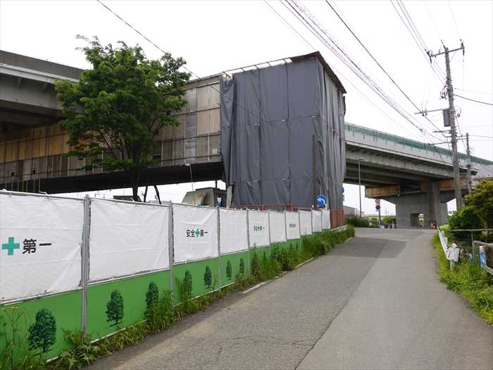 「新湘南バイパス」の高架に沿って進む。耐震補強工事が行われていた。