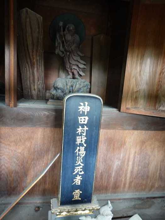 位牌「神田村戰傷災死者 霊」。