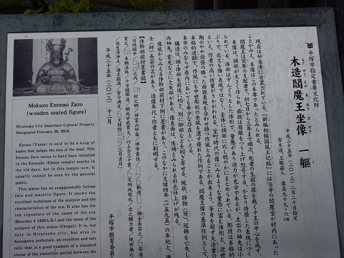 当寺の閻魔王像は、文禄4年(1595)の造像とされ、平塚市重要文化財に指定されています と。