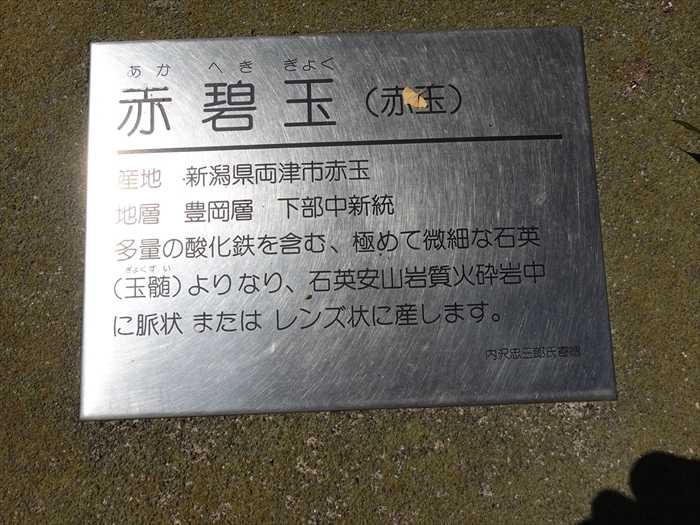鉱物的には、微細な石英(玉随)よりなり、多量の酸化鉄を含んで赤みを呈します。