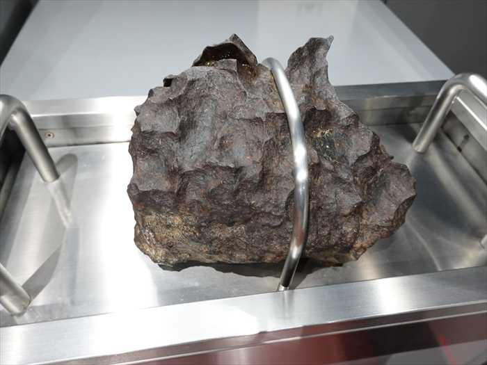 えぐったようなくぼみが見られます。成分は鉄とニッケルがほとんどで、重さは26.3kgあります。