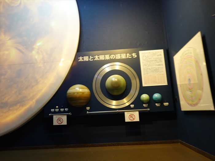 隕石や先代のプラネタリウム投影機、最新の太陽画像などを展示しています。