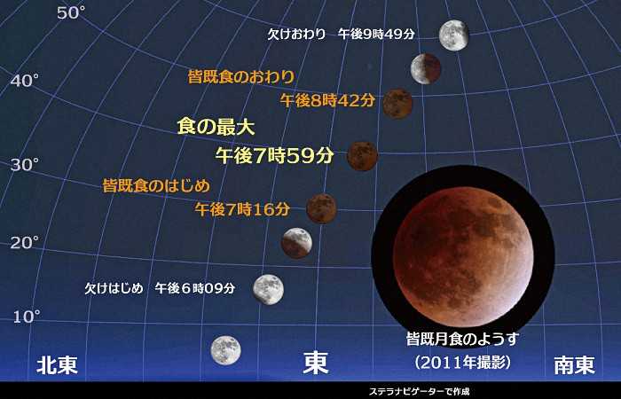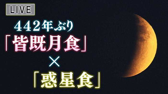 欠ける「部分食」が始まり、皆既食は同7時16分から同8時42分まで86分間続くとのこと。