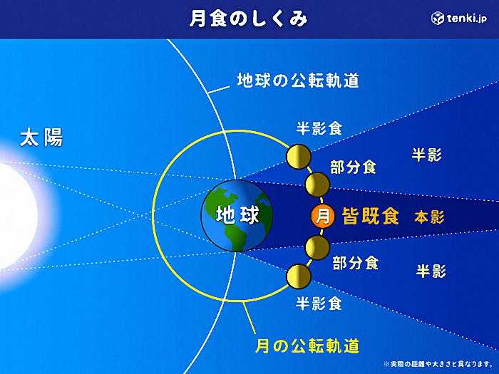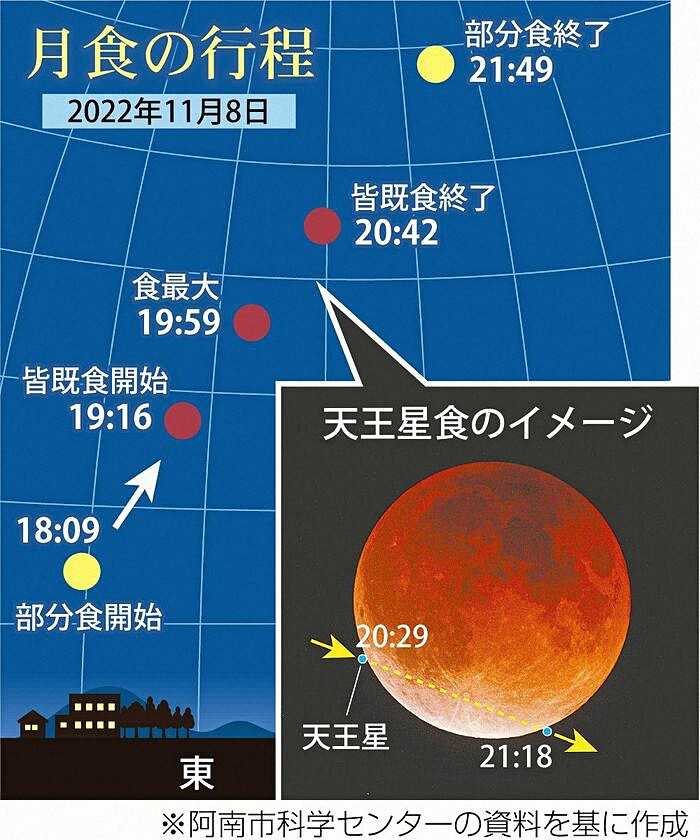 全国で見られる皆既月食は2021年5月以来で、今回はこの日・8日午後6時9分から月の一部が