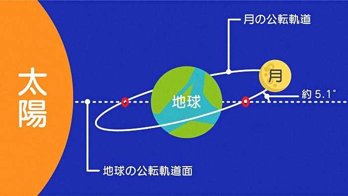 それは地球の公転軌道と月の公転軌道が5.1°程度傾いているためです。