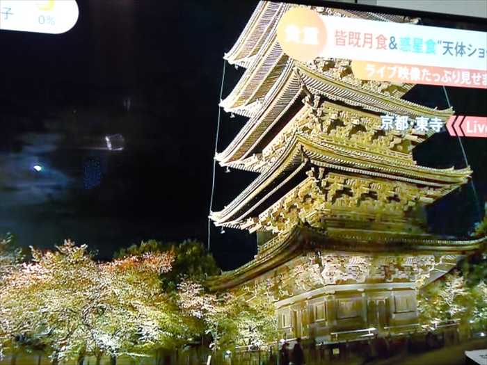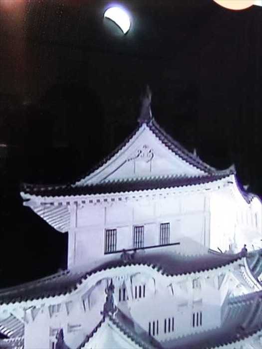 テレビでは姫路城上空の月の姿を。