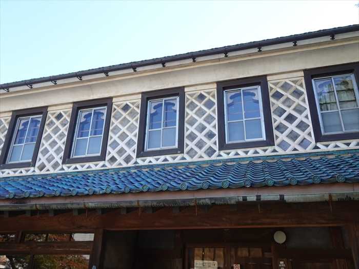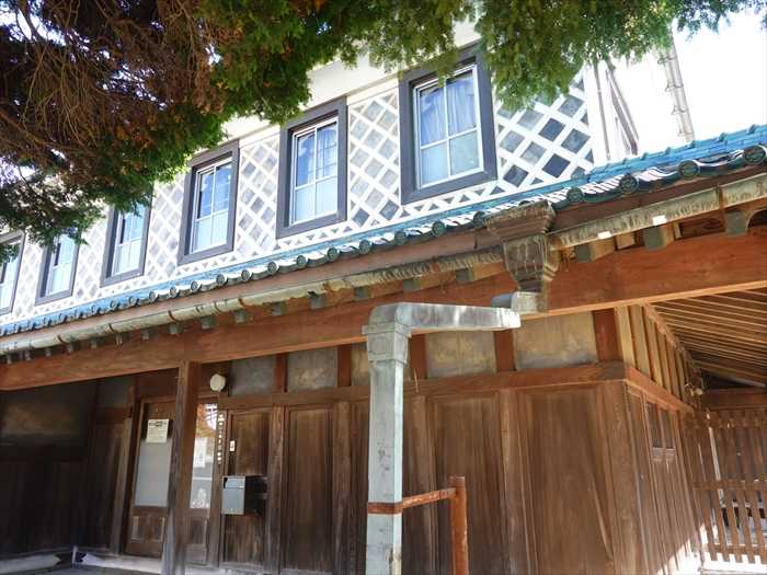 二階そして今はないが三階は大壁構造の海鼠壁に縦長のガラス窓を穿ち、屋根は瓦葺、軒蛇腹は