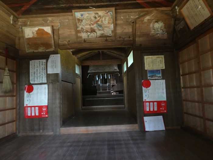 土居桁にはうっすらと朱が残されている。長押より上の小壁は群青色の漆喰塗りであった。