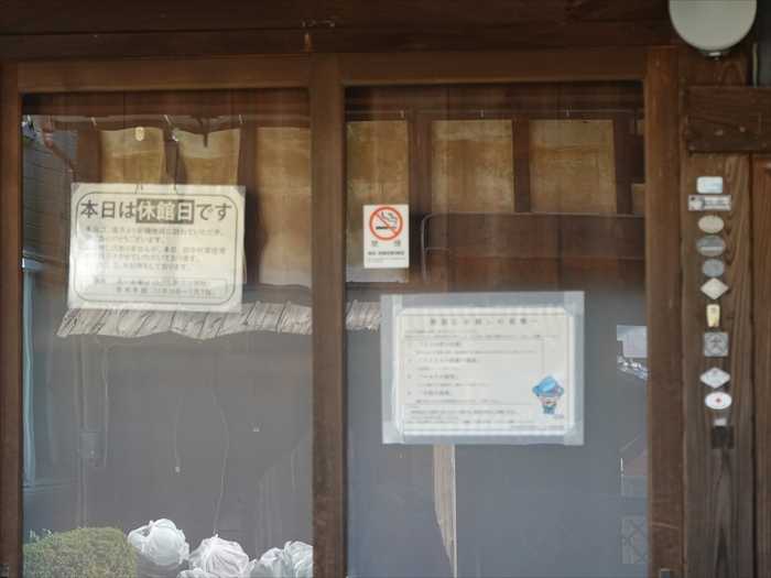 玄関には新型コロナウイルス感染拡大防止のため臨時休館中で