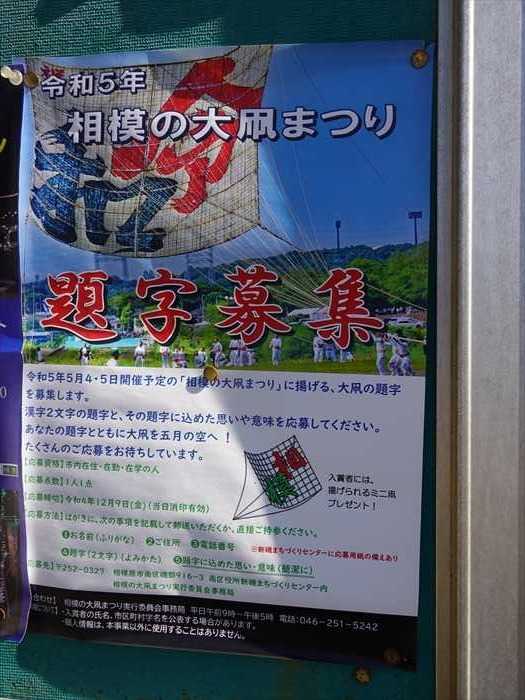 途中、掲示板にあった「令和5年 相模の大凧まつり」の「題字募集」ポスター。