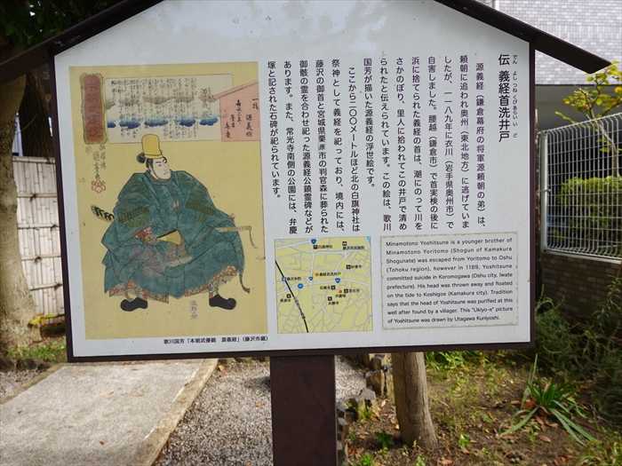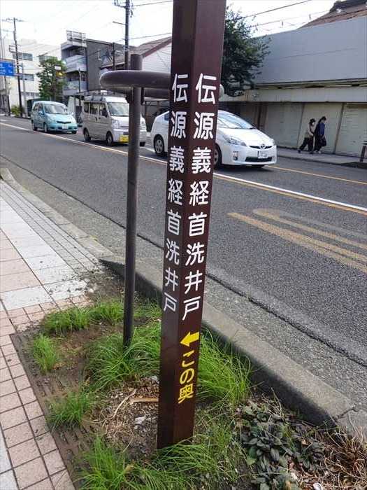 直ぐ先にあった「 伝源義経首洗井戸 」案内柱。