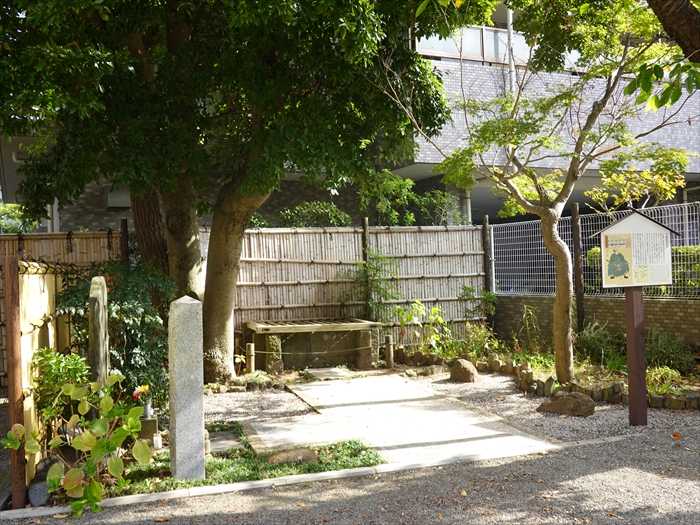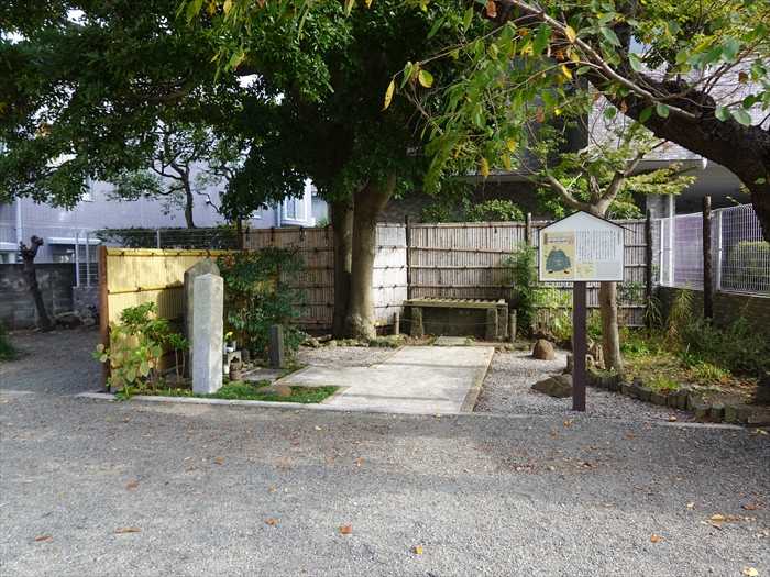 住宅街の小路を奥に進むと、突き当りの右手に「伝源義経首洗井戸」があった。