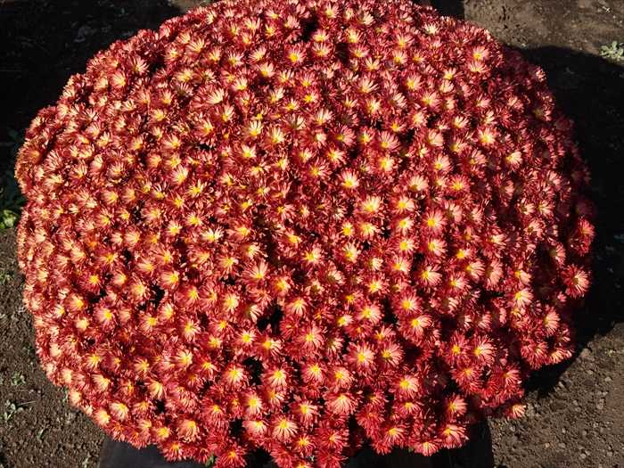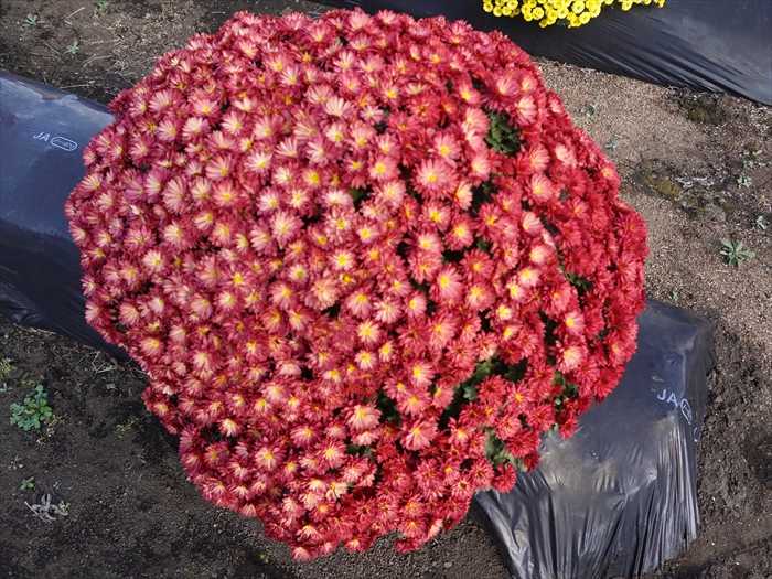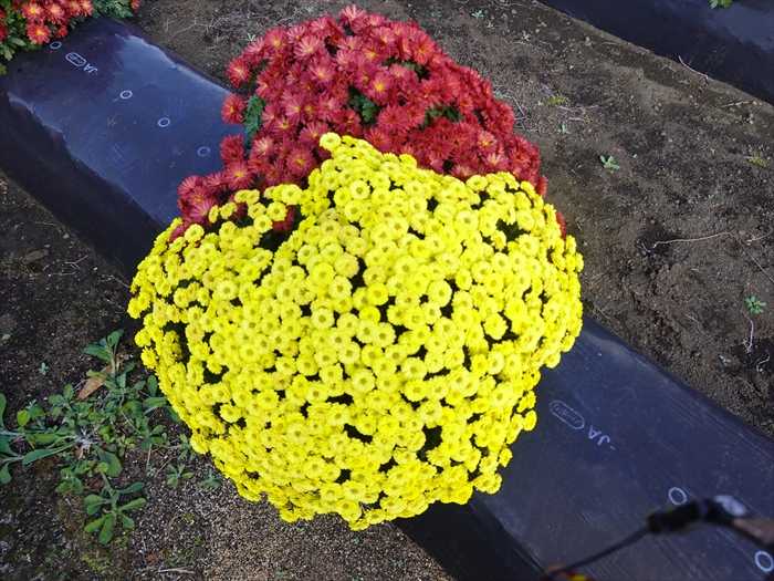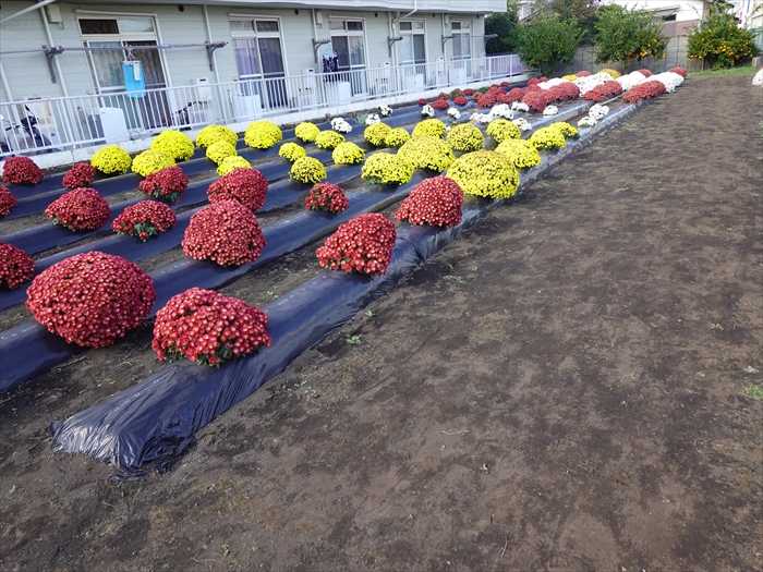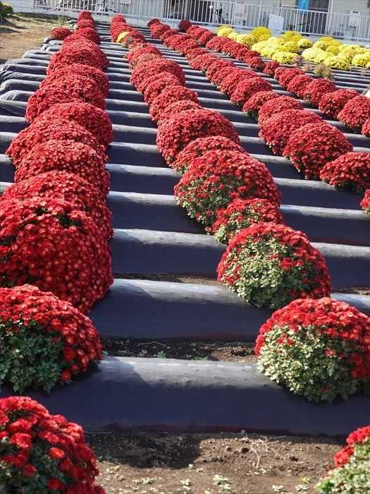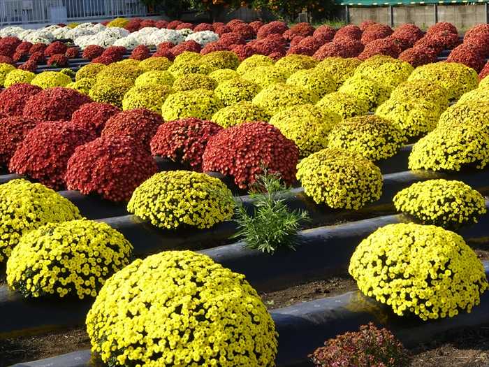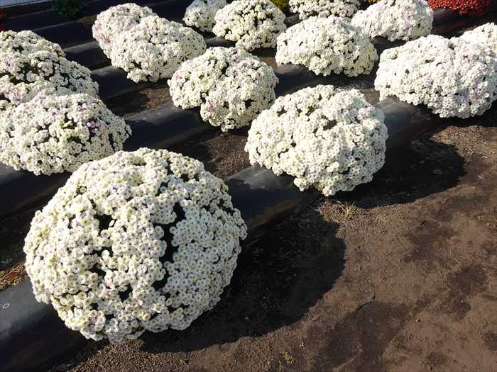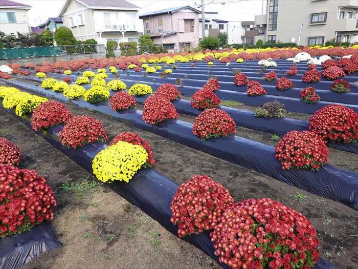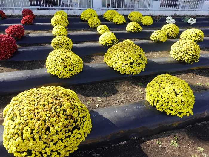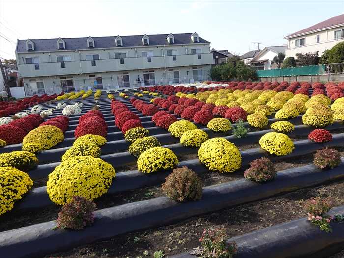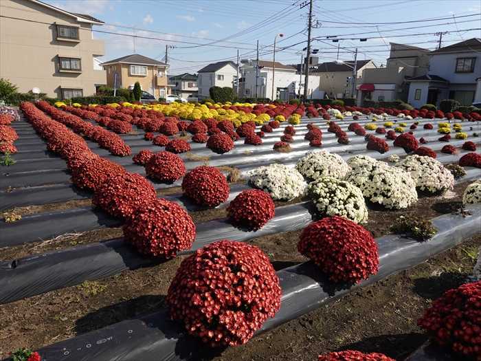 この時期になると菊園に整列するように赤や白、黄色など色鮮やかな約700株の半球状に