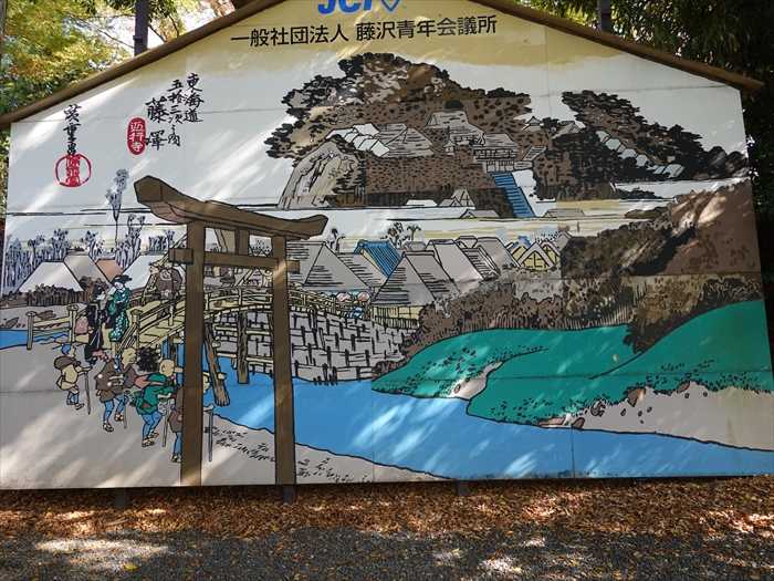 歌川 広重 東海道五拾三次の内 藤澤 遊行寺  一般財団法人 藤沢青年会議所」と。
