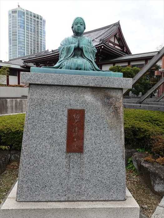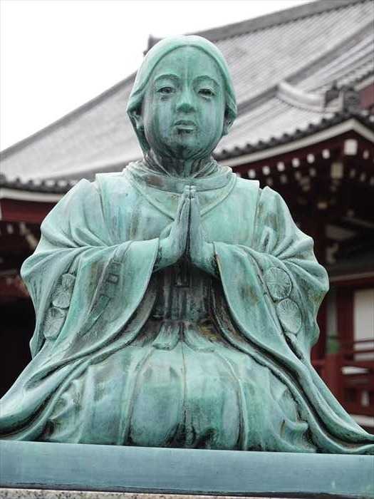 法然は上流階級のものだった仏教を一般大衆に広めました。右側には中国の高僧、善導大師