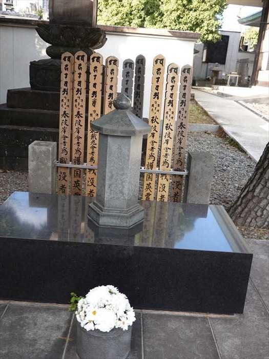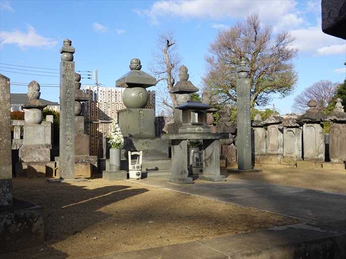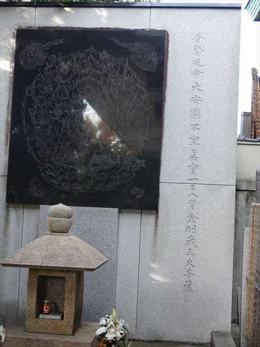 ご本堂北側には東京都史跡、江戸時代の万能の天才、細井廣澤の墓がある。山門の額「致航山」は