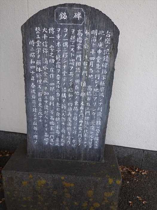 荒廃セルヲ見テ明治十年四月当地、髙橋市右エ門世話人代表トナリ市兵衛、浅右エ門、権三郎