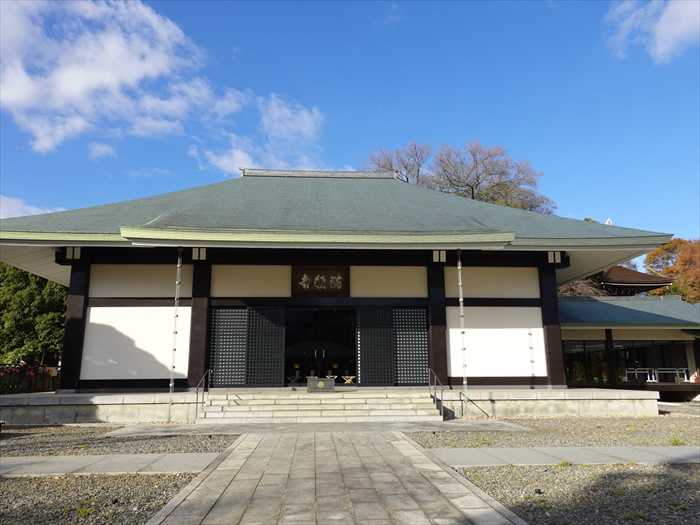第一人者吉田五十八氏。昭和六十二年に境内西側に講堂が完成。また客殿の北側には総檜造りの